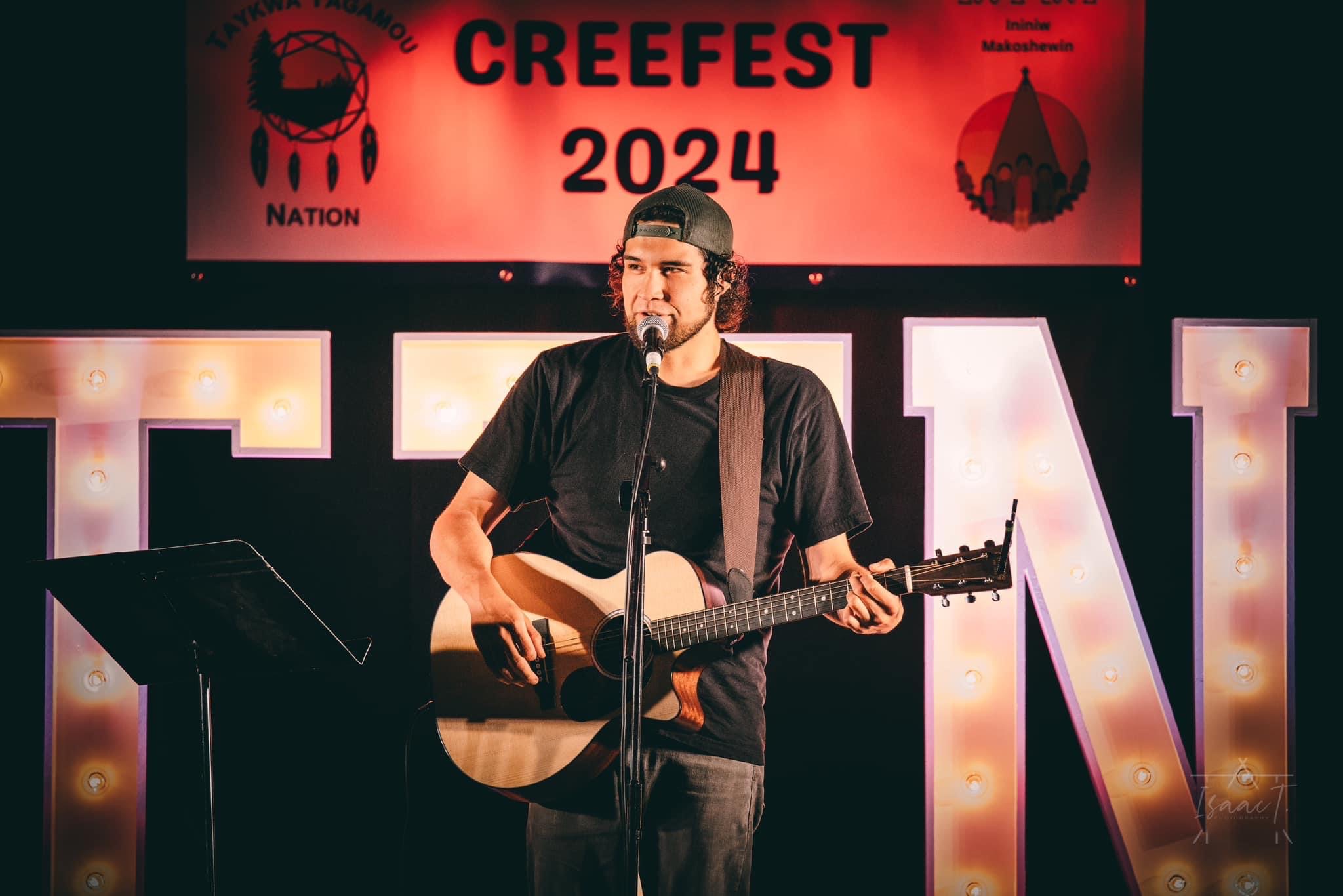 Johnny Linklater is an emerging Indigenous musician and songwriter from Moosonee, Ontario, now residing in Cochrane, Ontario with his family. He has been a multi-instrumentalist for over 20 years and is the former guitarist and vocalist of Cochrane’s own rock band, Albatross, where he honed his performance skills and developed a deep love for collaborative music-making. Now stepping into the next chapter of his artistic journey, Johnny is focused on cultivating his solo work — drawing from lived experience and a lifelong relationship with music as medicine. He aims to strengthen his songwriting practice, exploring themes of healing, sobriety, and the transformation of intergenerational pain into power through creative expression. Johnny’s work is rooted in a vision of musical storytelling that uplifts Indigenous identity, resilience, and emotional honesty. With every chord and lyric, he seeks not only to heal himself—but to create music that resonates with others on the path of reclamation and recovery.